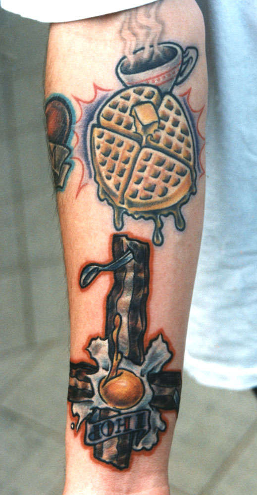 Waffles-with-a-side-of-Blasphemy-tattoo-32466 Published January 6, 2014 at 519 × 1000 in Hipster Tendencies – Brunch Tattoos Next → Brunch sleeve by Joby Cummings http://www.jobycummings.com/