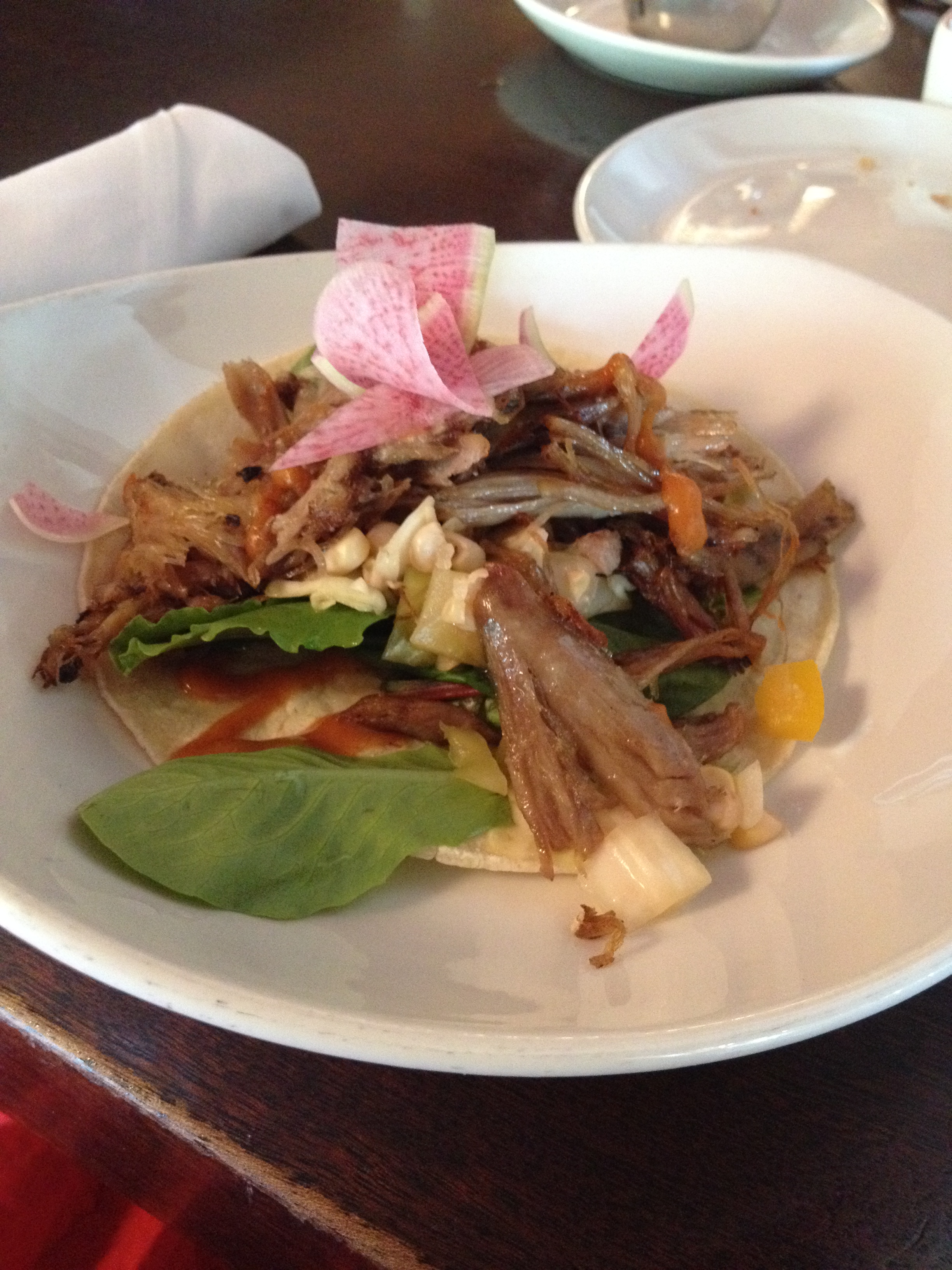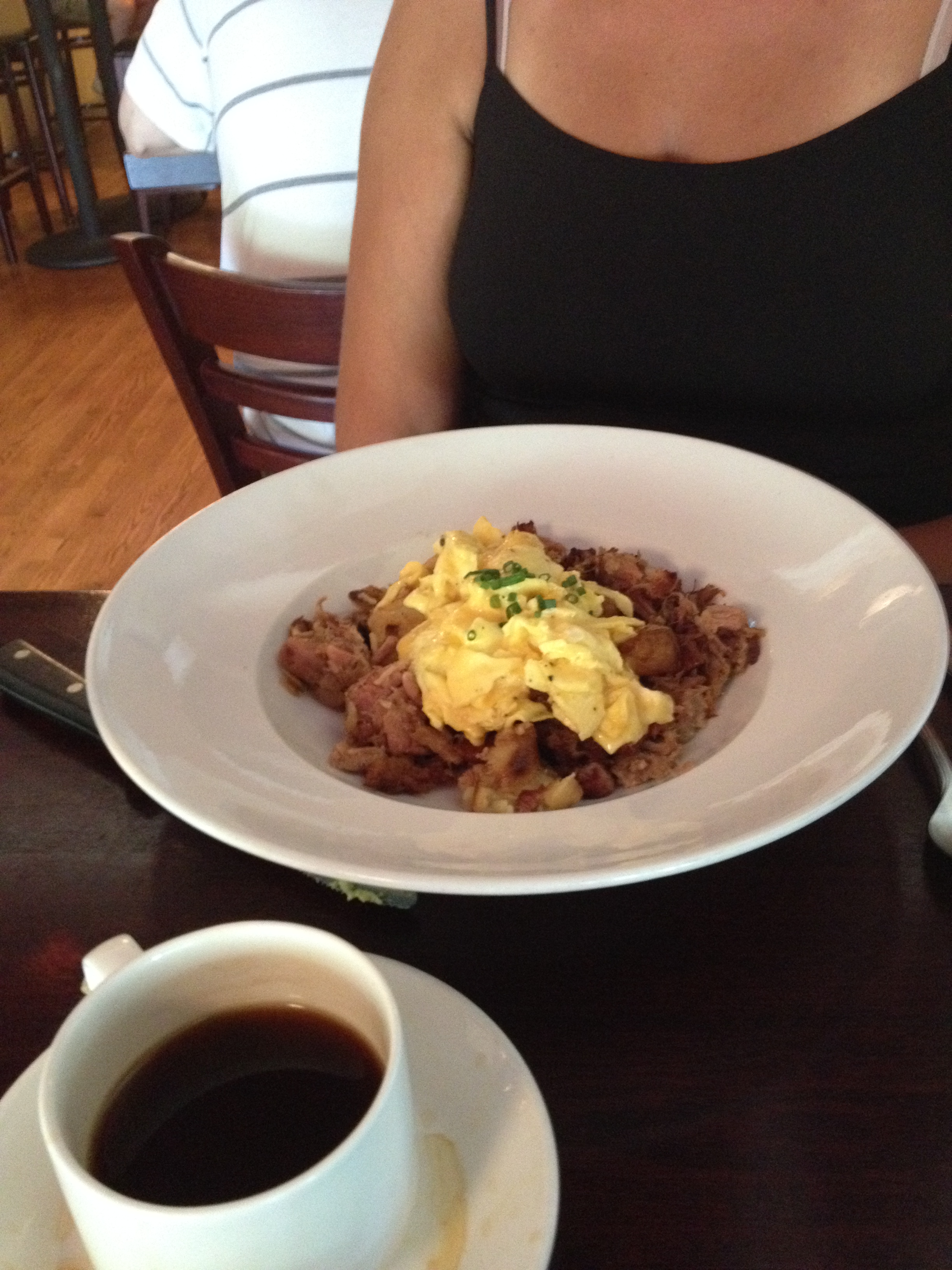 The Tallsasaurus went for something hashy, as is his wont, although this time in Eggs benedict form. It was on cornbread instead of biscuits, and was fabulous. There’s also a pulled pork benedict on their menu that I will have to try sometime.
